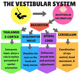 Vestibular stimulation is the feedback/stimulus that human body receives due to any of its movement (linear & rotational) in gravity. The intensity of these stimuli range from mild e.g. nodding to severe e.g. sitting on a swing / any amusement ride.